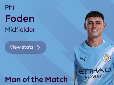 梅开二度,福登当选曼城vs利兹联全场最佳球员