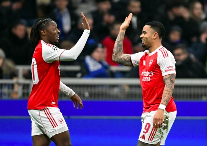 第10分钟,阿森纳在国米的30米区域连续随意传球,廷贝尔送出助攻,热苏斯打破僵局。