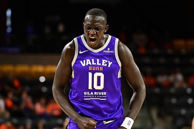 本场比赛中,被太阳下放到NBA发展联盟赛场进行锻炼的内线新秀卡曼-马鲁阿奇(Khaman Maluach)的表现也是值得肯定的。马鲁阿奇全场出场29分钟,投篮15中9,三分线外3中2,罚球2中2,得到了23分11篮板1盖帽的两双数据,其中还包括了4个前场篮板,还有5次失误和4次犯规,正负值更是达到了全场最高的+21。马鲁阿奇在进攻端展现出全面的得分能力,不仅篮下得分能力不俗,而且在外线投篮方面的表现也是值得肯定的,他的综合表现也是超出大家预期的。马鲁阿奇在防守端也是在内线篮板保护和内线防守方面起到了一定的作用的。总体来看,马鲁阿奇的表现算得上是令人刮目相看,这也为球队的胜利做出了巨大的贡献。